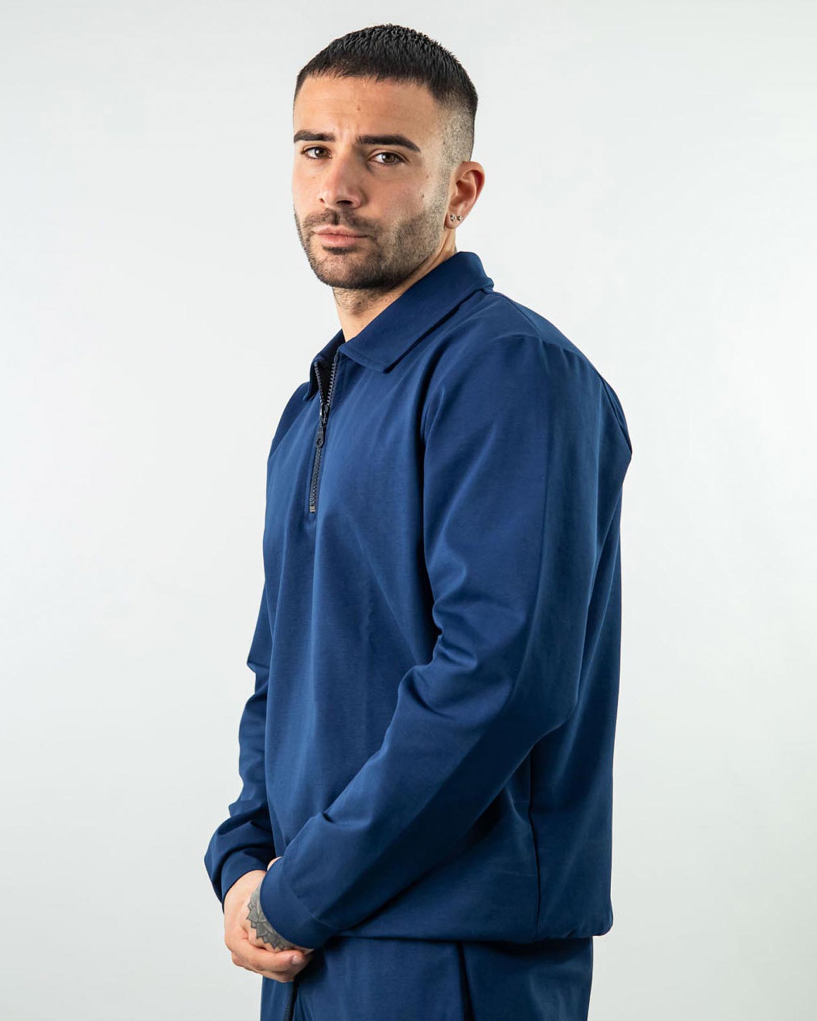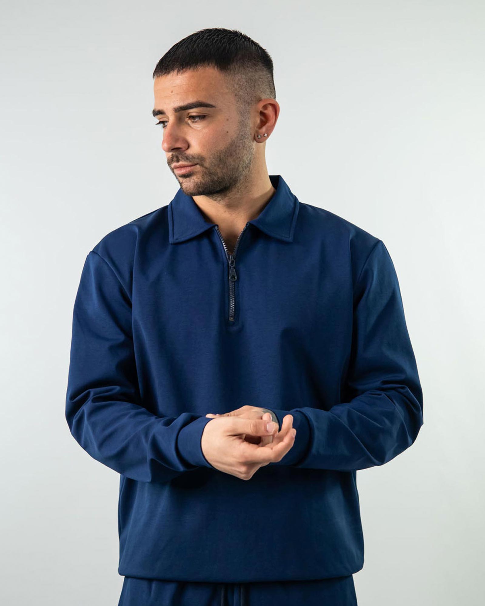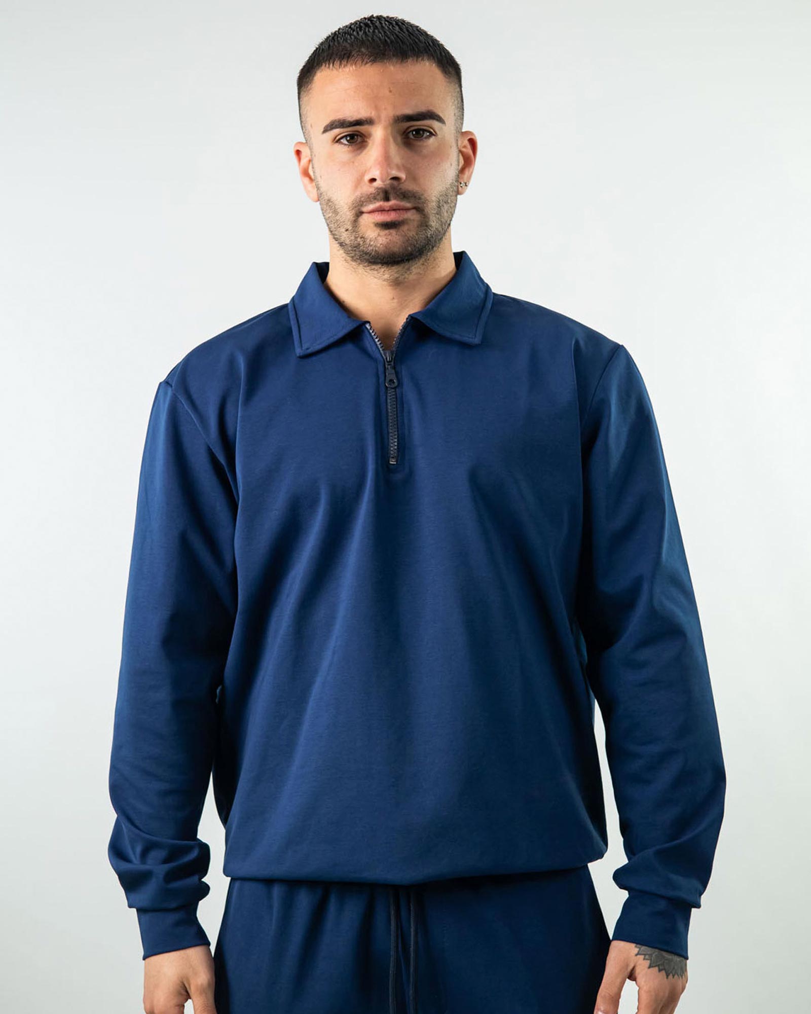 Felpa relaxed fit con collo revers con chiusura frontale con cerniera. Presenta maniche lunghe e finiture elastiche. Il modello in mfoto indossa taglia XL, è alto 1,85cm e pesa 97kg.