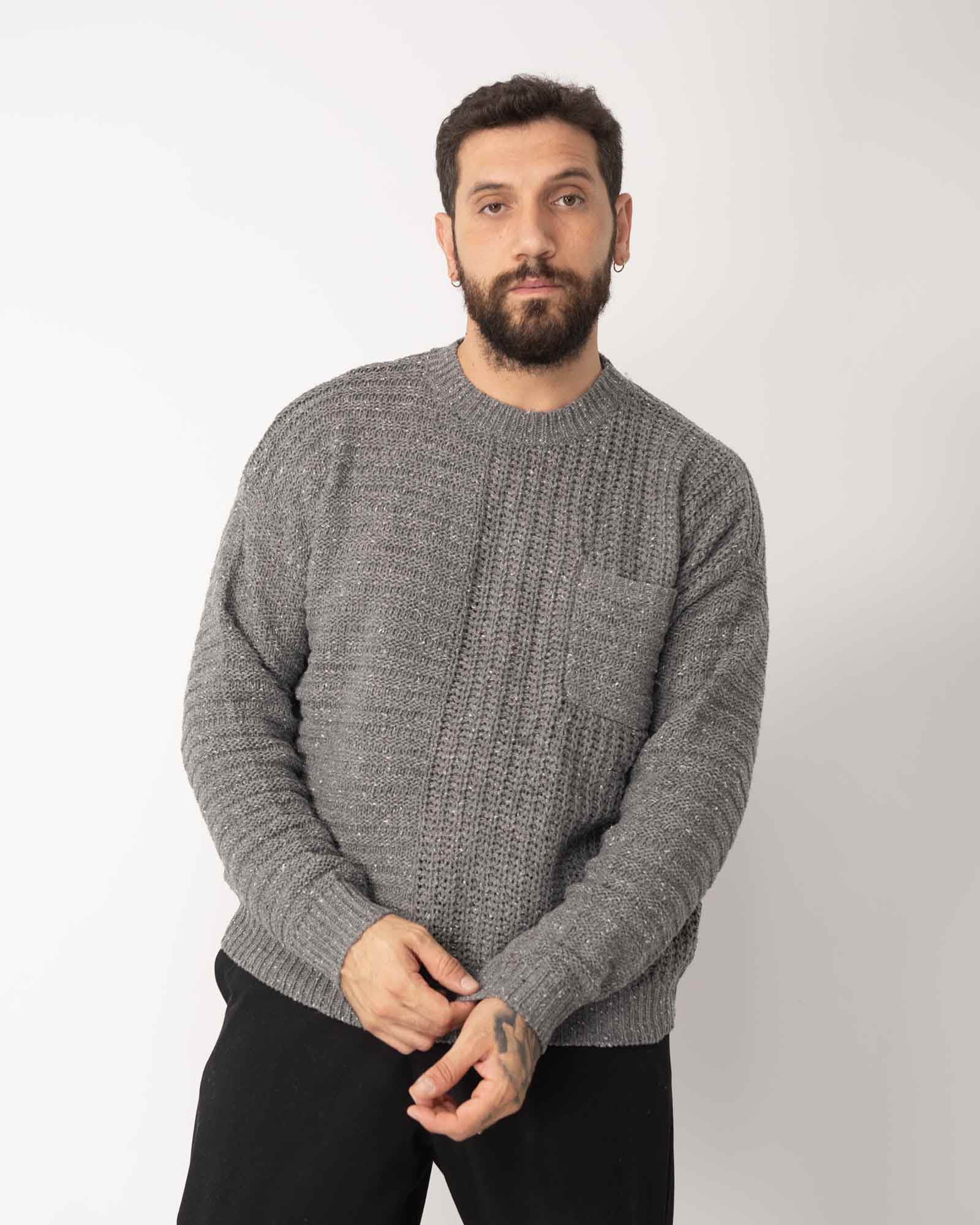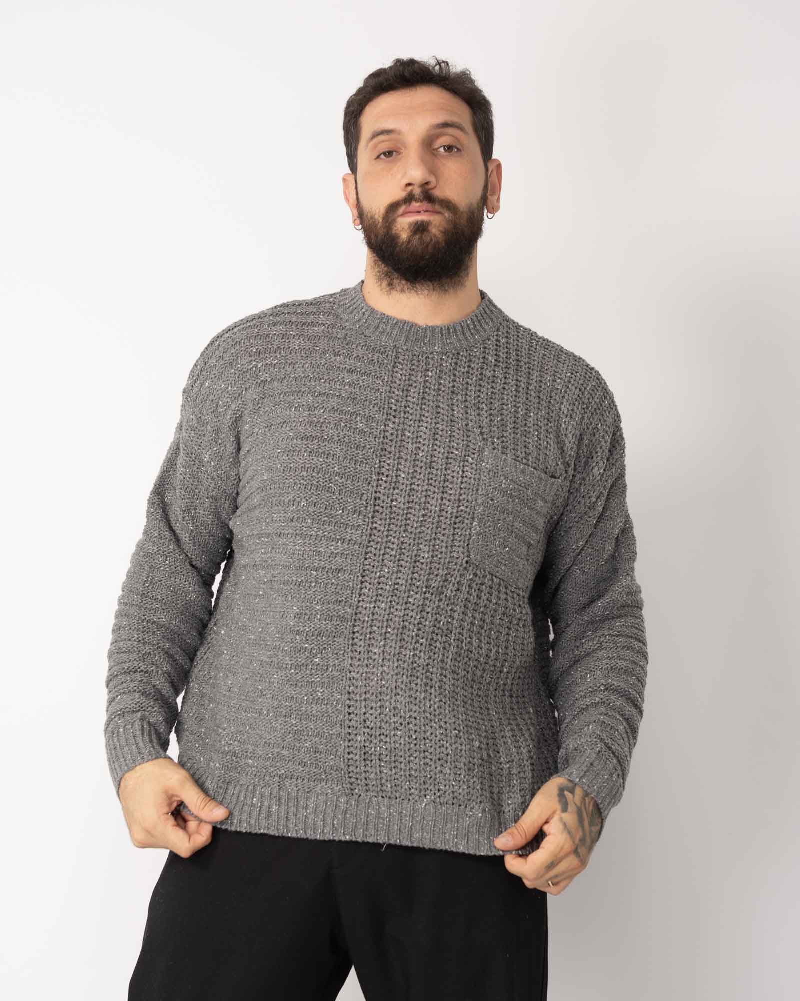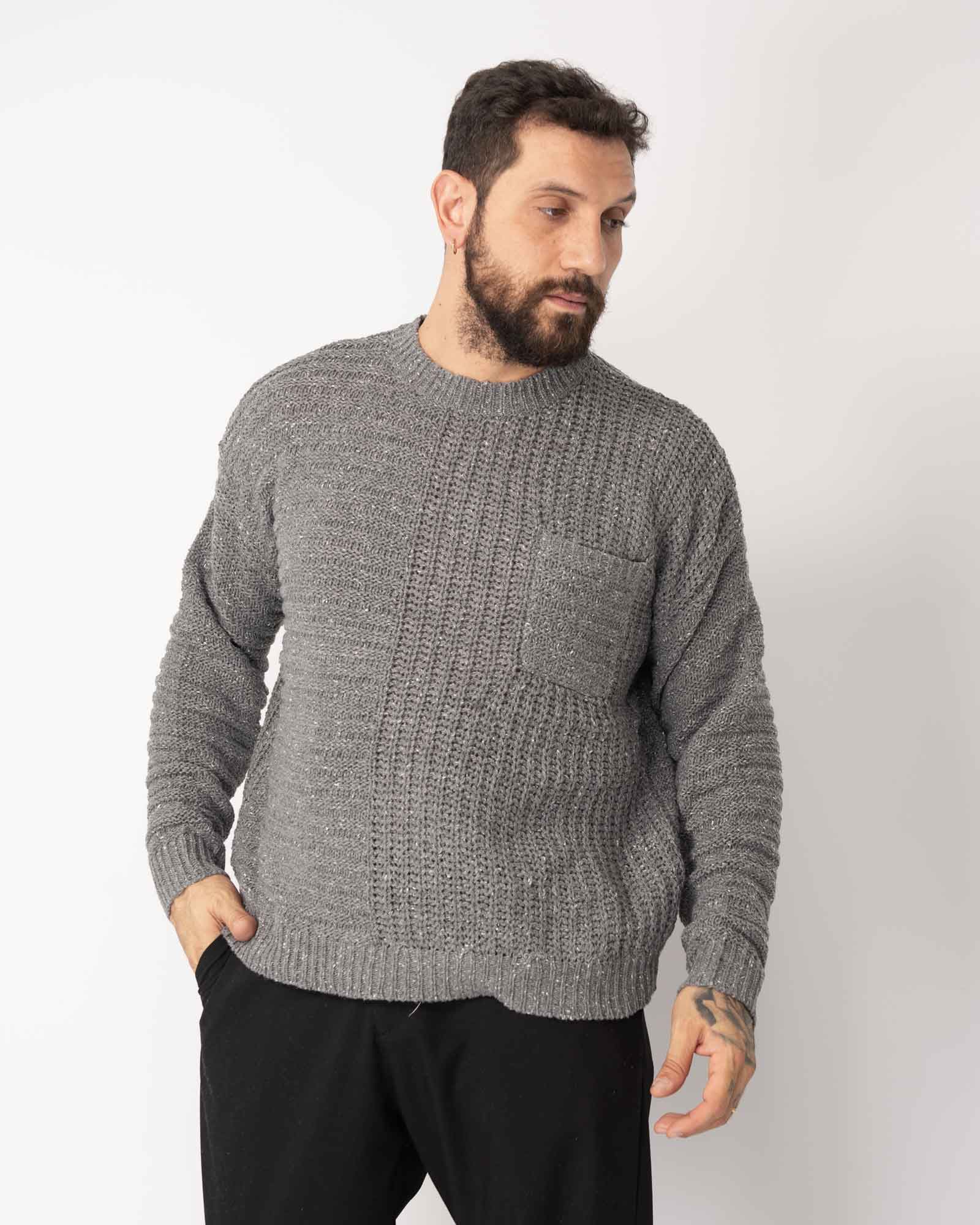 Pullover fantasia bottonato con taschino grigio