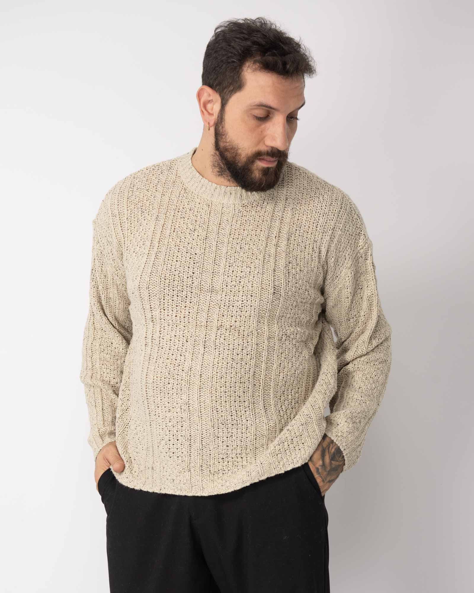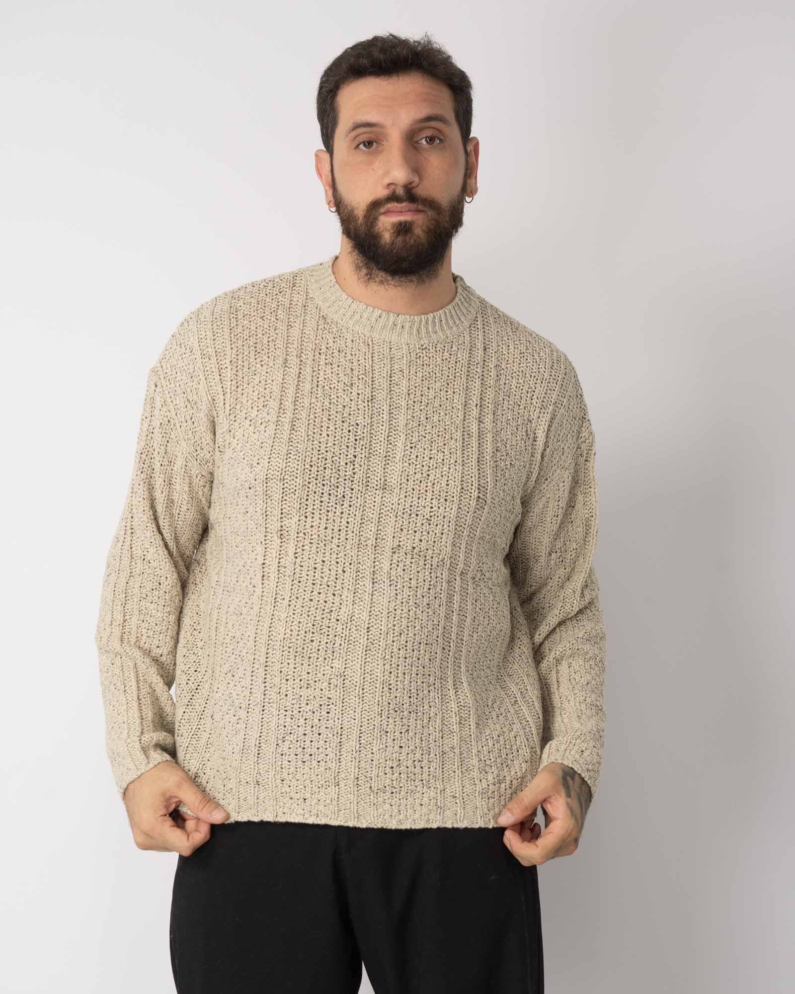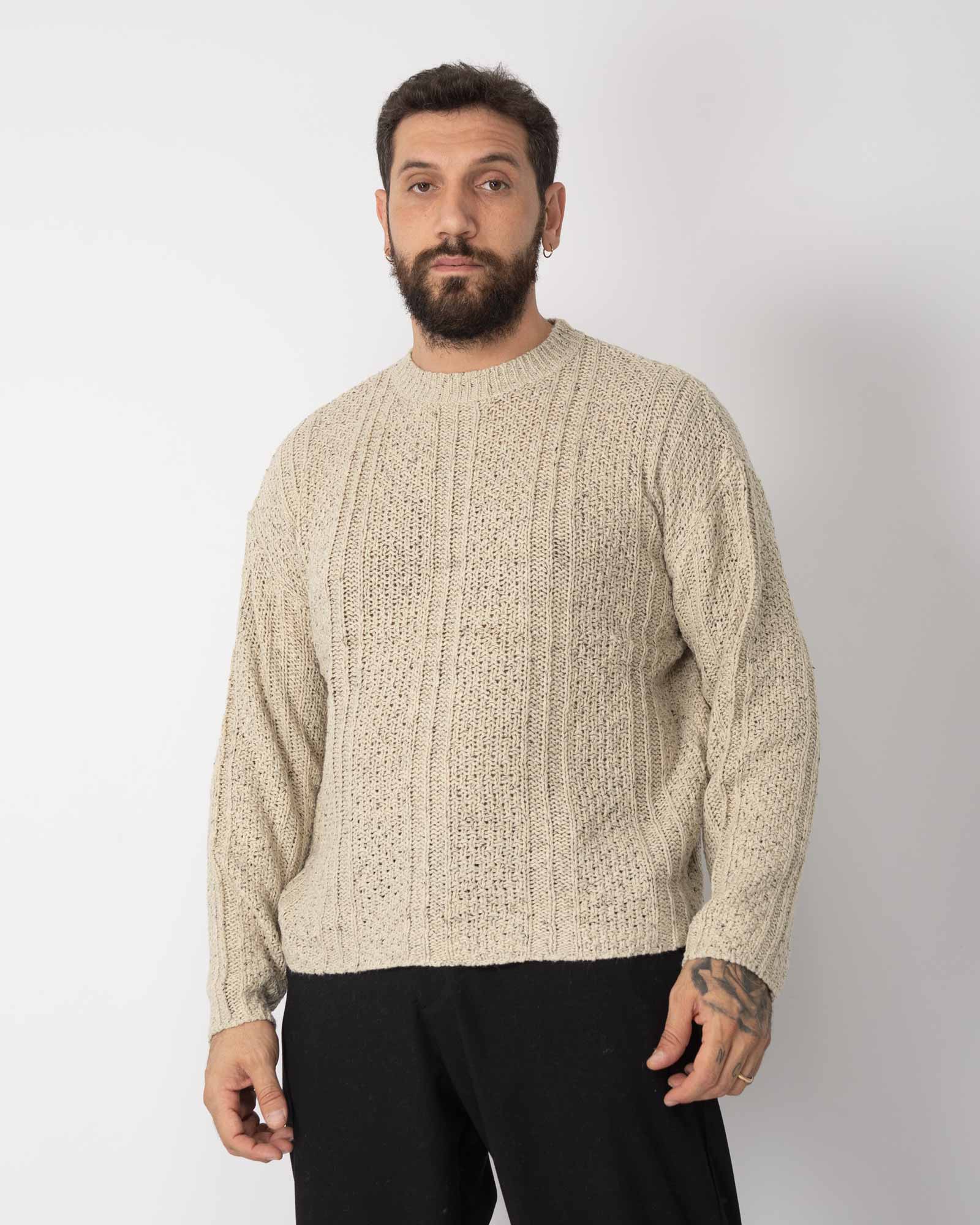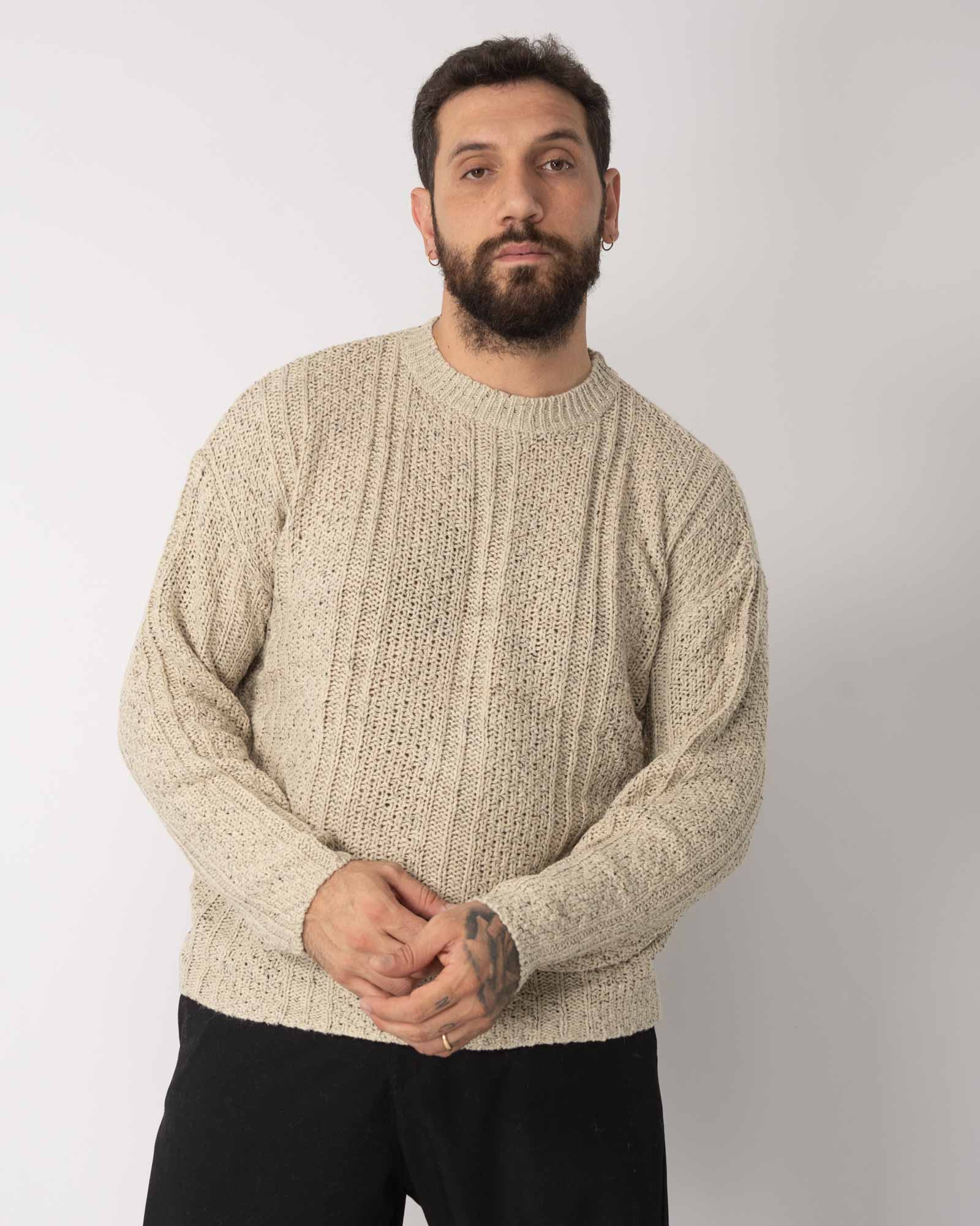 Pullover fantasia bottonato sabbia