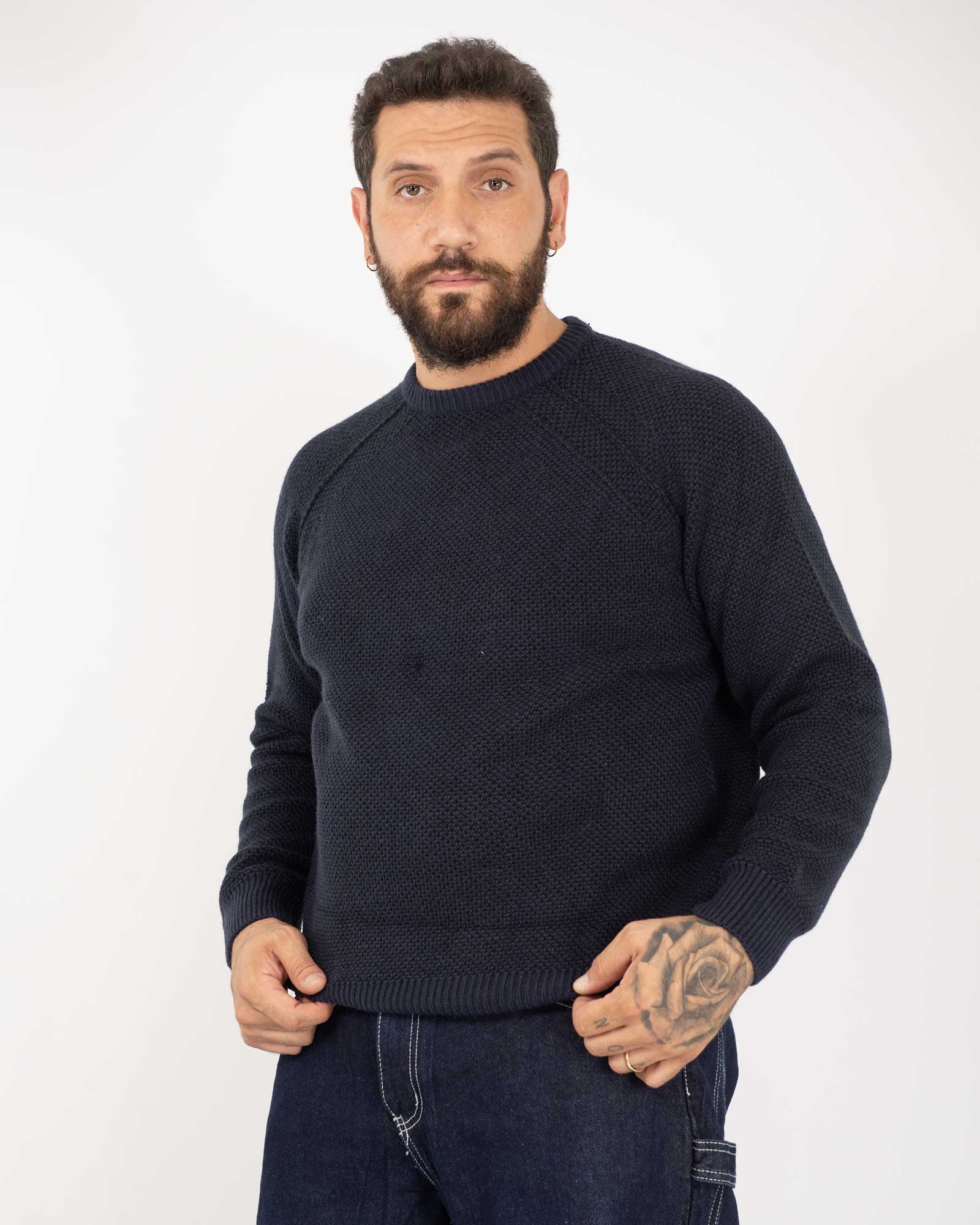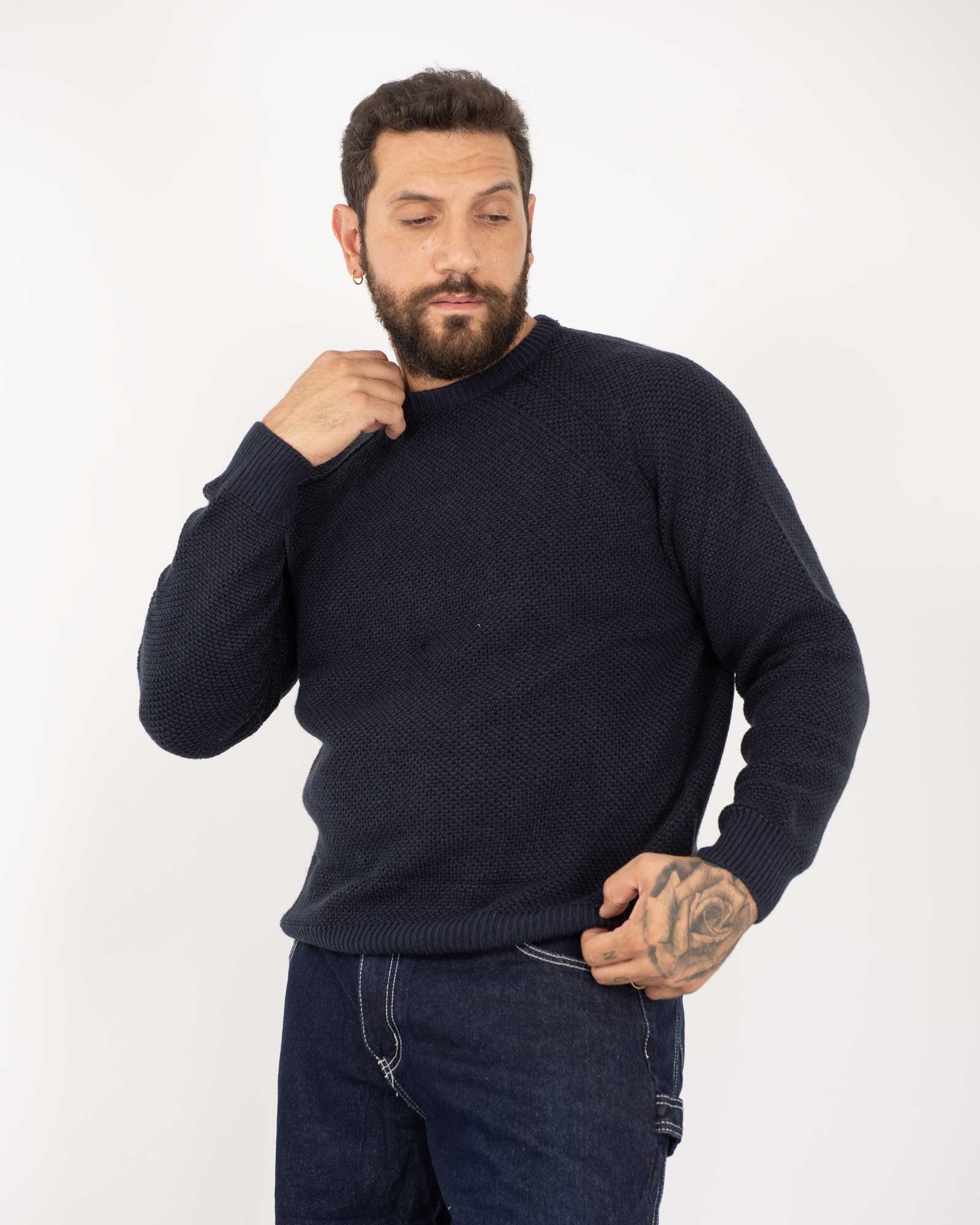 Pullover struttura nido d'ape blu